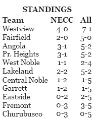 Westview raised its NECC boys basketball record to 4-0 last Friday night in Emma with a 69-53 thrashing of Angola. After a slow start which saw the Warriors emerge from the first period holding a 9-6 lead, the hosts exploded for 32 points in the second frame to push their advantage to 17 (41-24) by halftime. Kaden Grau netted 12 […]